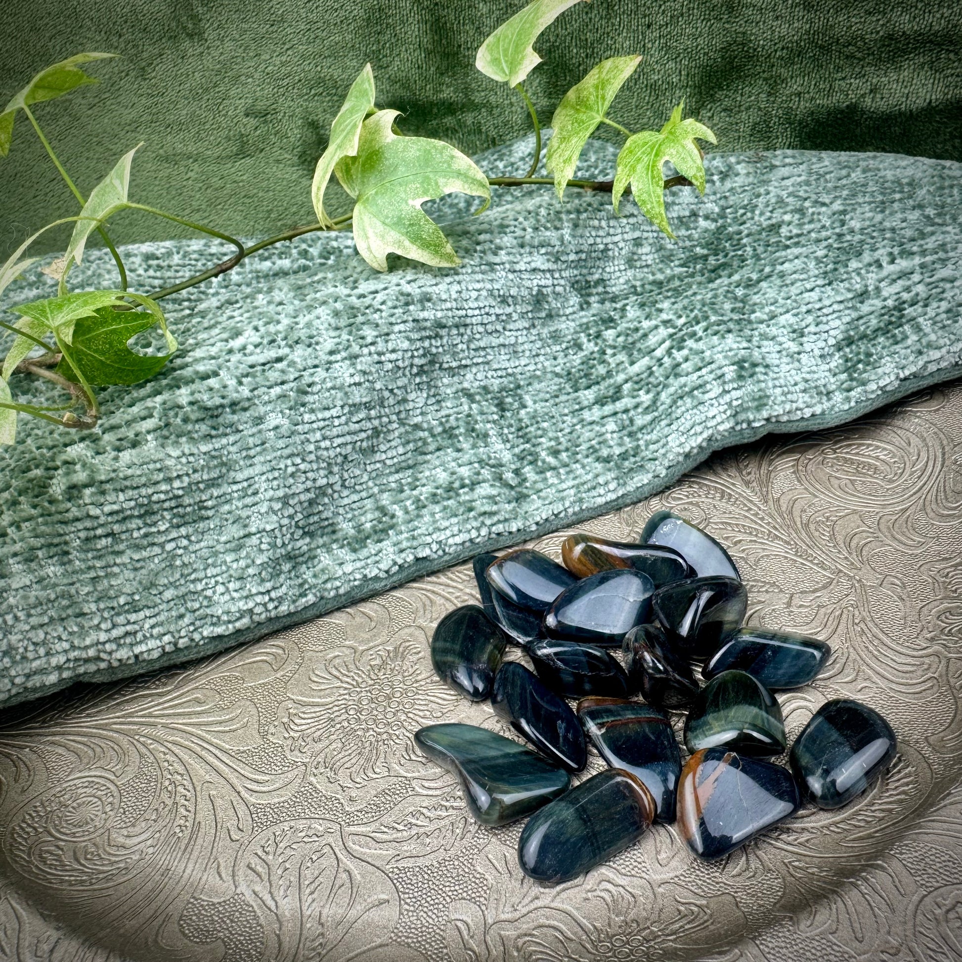 Multi Tiger’s Eye tumblestones display a striking blend of colours including golden Tiger’s Eye, deep red Tiger’s Eye and blue Tiger’s Eye. These natural variations create layered bands of colour with the characteristic silky shimmer known as chatoyancy, giving each stone a dynamic appearance as it catches the light.